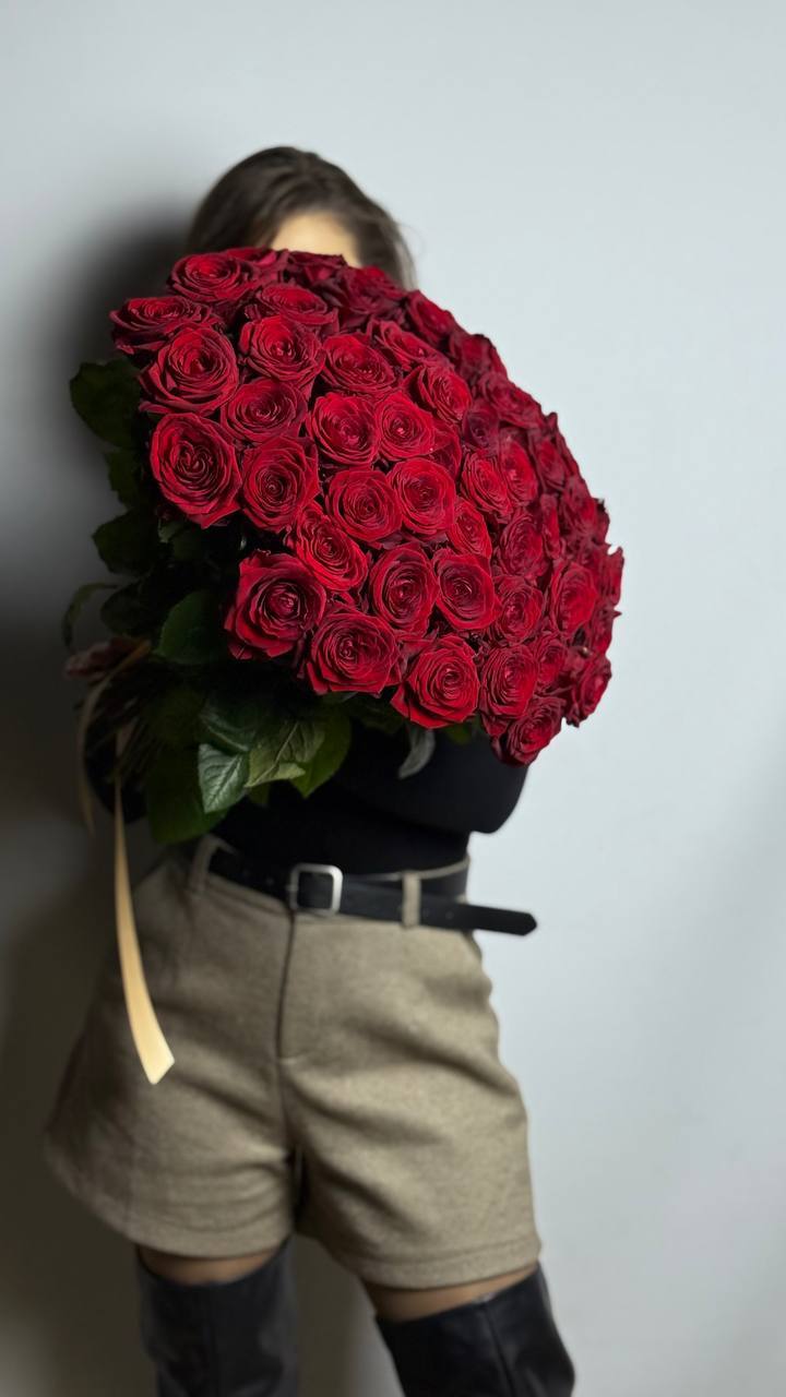 Розы красные 55 штук