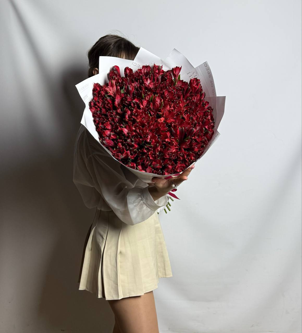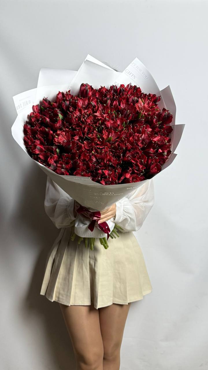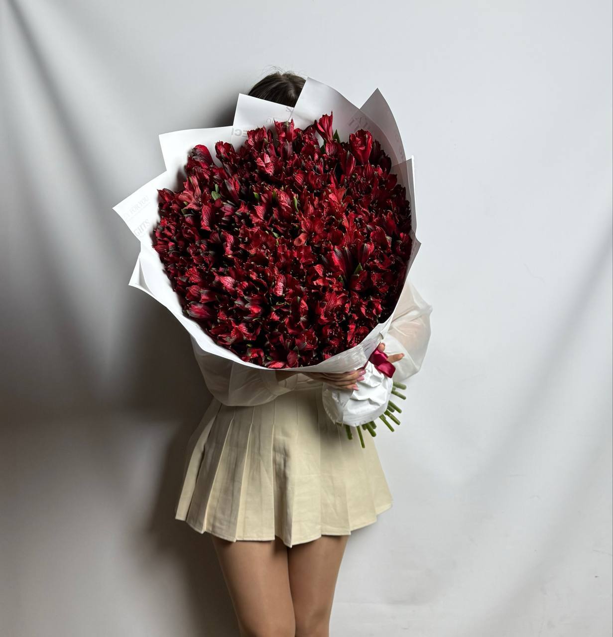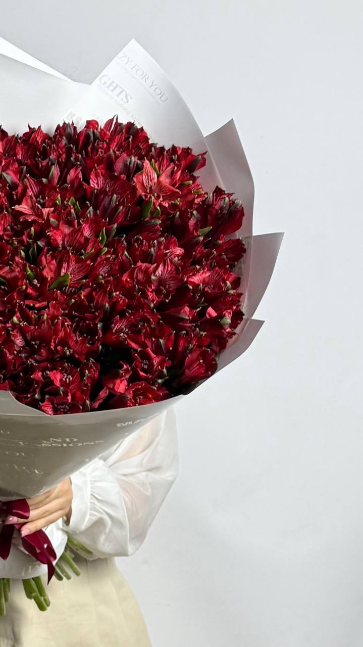 "Бордовый закат" — роскошный букет из альстромерий оттенка глубокого бордового, который подарит вашему любимому человеку ощущение волшебства и тепла уходящего дня! Элегантность этого букета подчеркнет вашу заботу и чувства, создавая атмосферу романтики и уюта. Идеальный подарок по любому поводу и без него – пусть ваш близкий человек почувствует себя особенным сегодня же!
