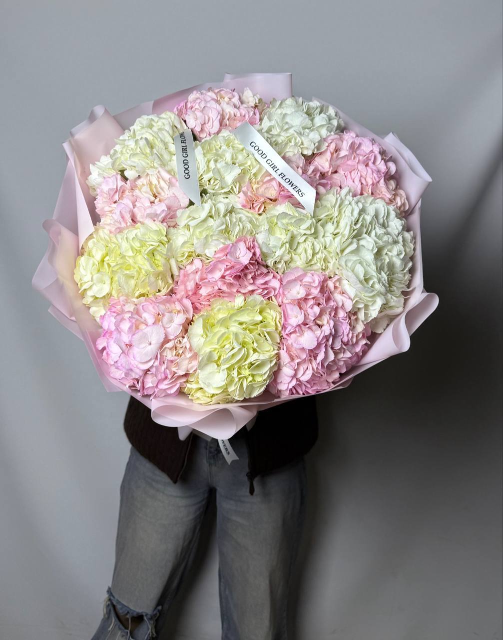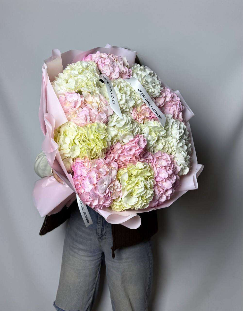 «Букет для хорошей девочки» — нежные оттенки гортензии подчеркнут вашу заботу и внимание! Идеальный подарок девушке, которая сияет добротой и очарованием. ✨ 15 роскошных соцветий гортензии создадут атмосферу романтики и уюта. 🌸 Букет надолго сохранит свежесть и подарит радость получательнице. 👍 Подарите близкой вам «хорошей девочке» частичку тепла и любви уже сегодня!