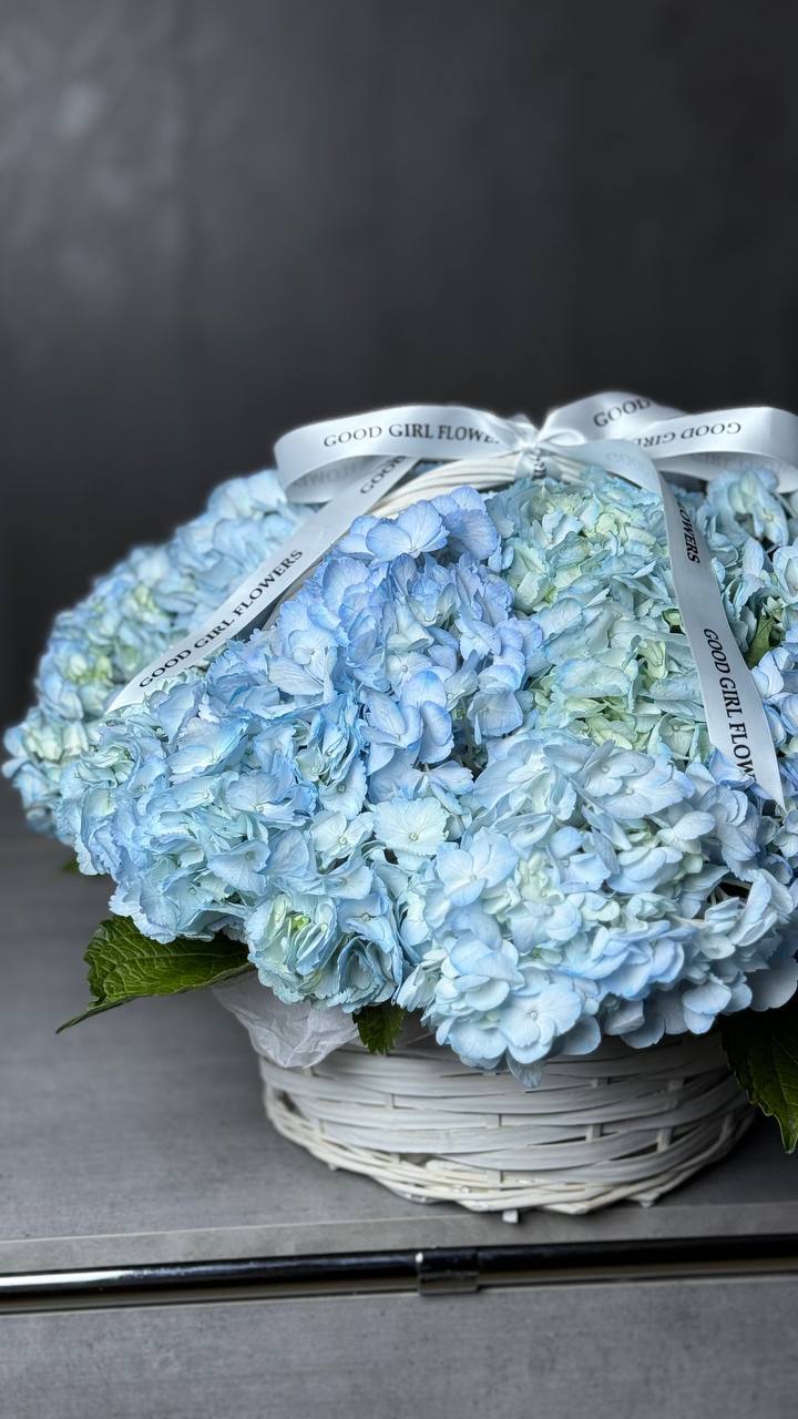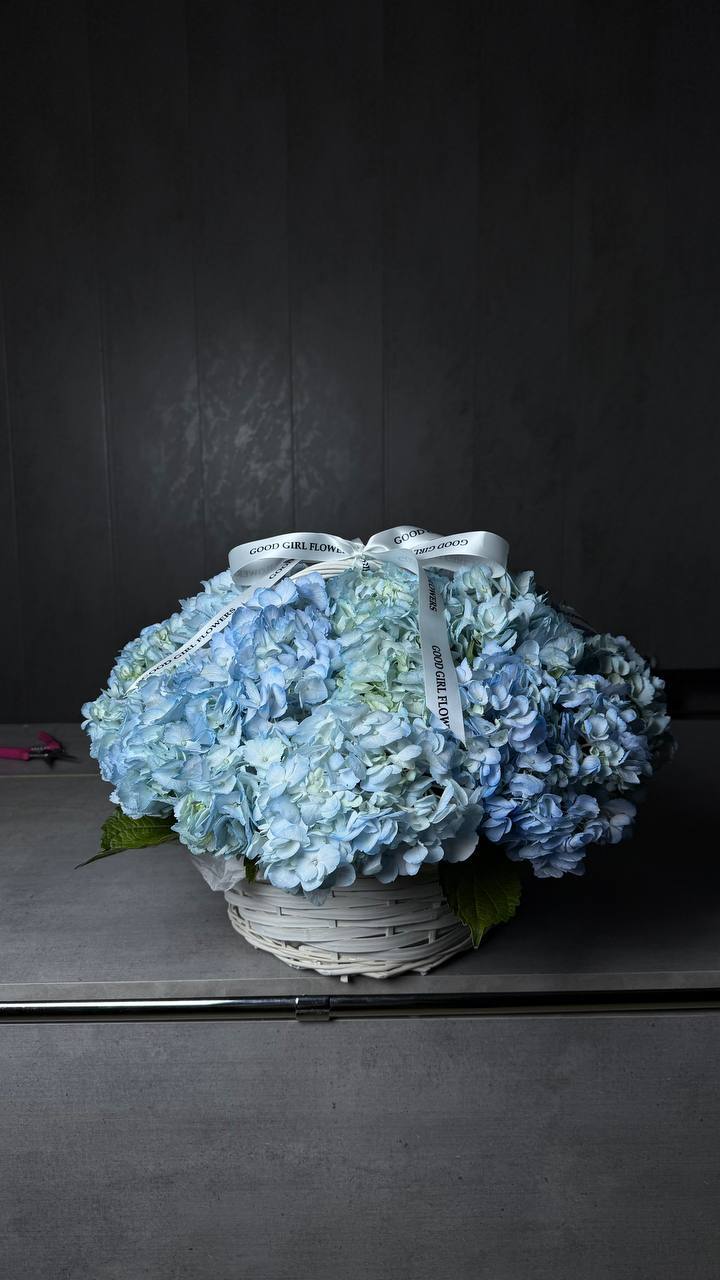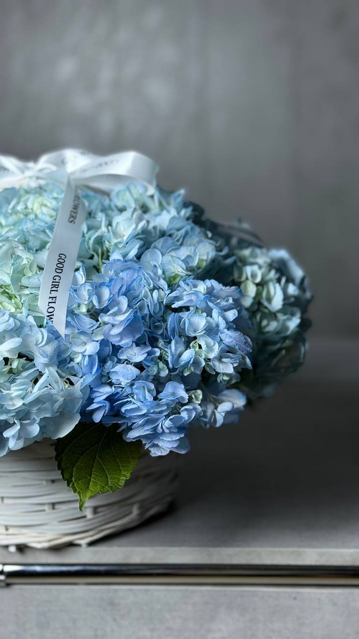 Нежная корзина из голубых гортензий. Прекрасный выбор, чтобы выразить глубину чувств!