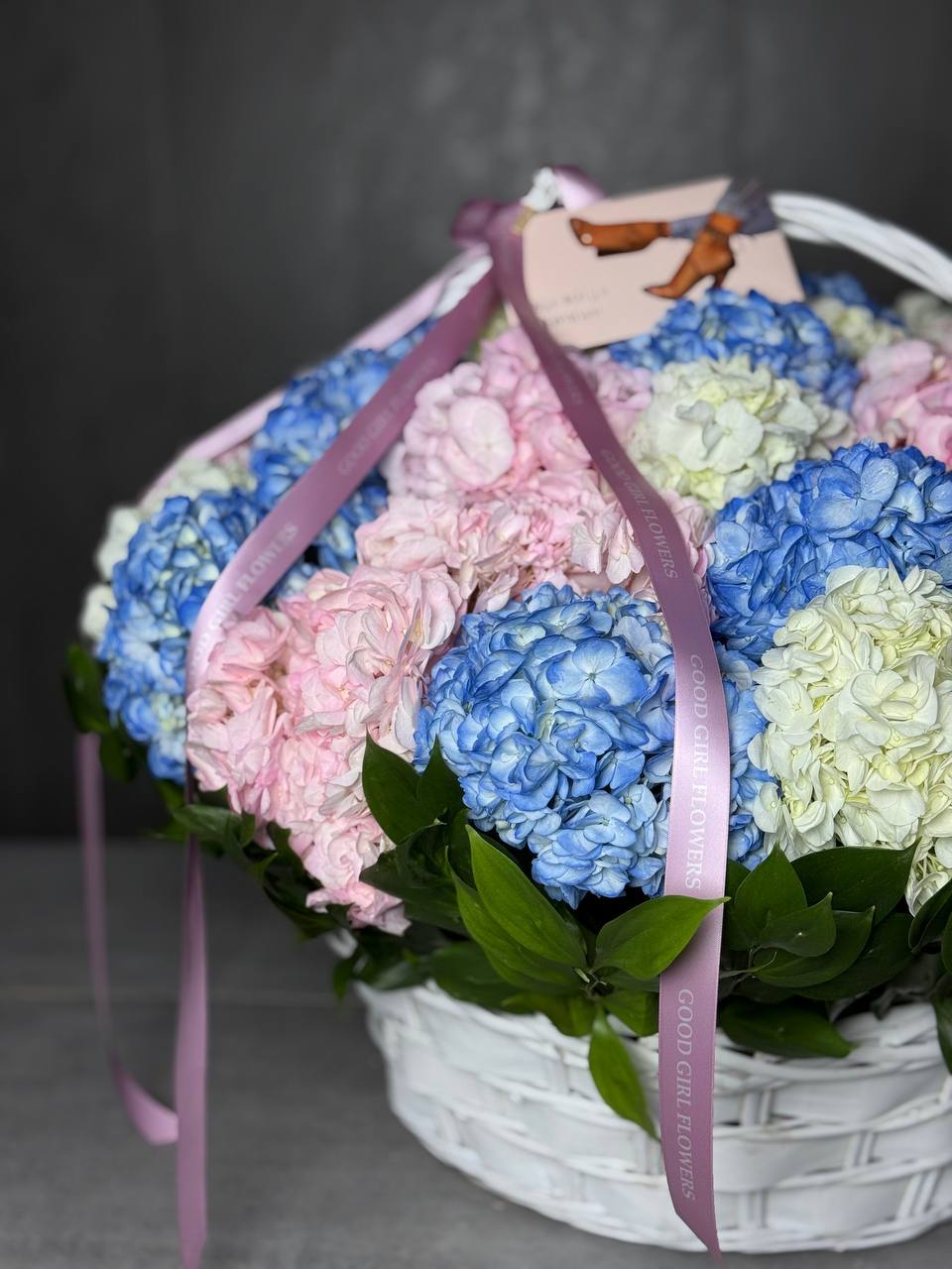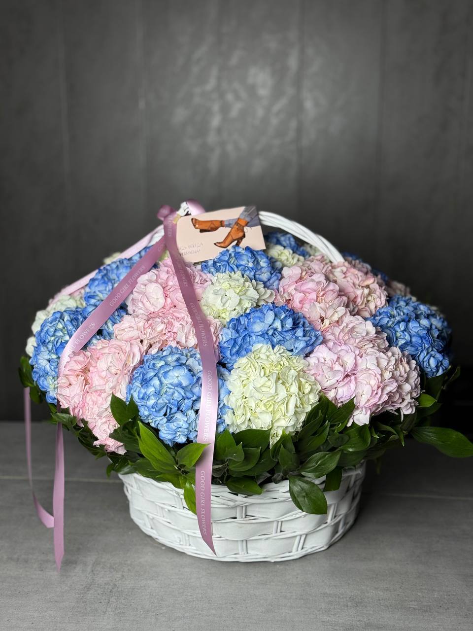 Погрузитесь в атмосферу нежности и радости вместе с корзиной «Для яркого настроения»! Идеальный подарок любимому человеку, коллегам или близким! Гортензии – символ чистоты отношений, а элегантные ветки рускуса подарят ощущение тепла и уюта. Создайте незабываемые моменты вместе уже сегодня!