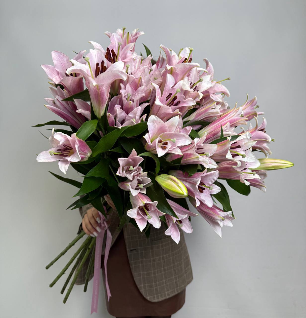 Лилии под ленту – изысканный букет из девяти благородных лилий, который станет символом чистоты отношений и искренних чувств! Идеальный выбор для особых случаев: День рождения, годовщина, свидание или просто приятное внимание близкому человеку. Элегантность букета подчеркнет вашу заботу и утонченный вкус. Не упустите возможность подарить красоту и очарование природы близким людям уже сегодня!