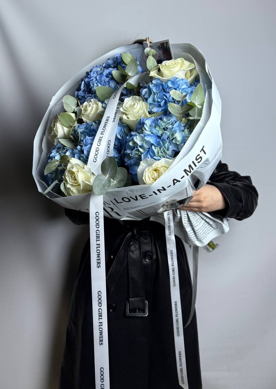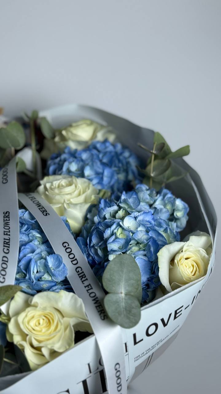 "Париж" – букет, вдохновленный романтикой столицы любви! Элегантное сочетание трех сортов эвкалипта, пяти роскошных гортензий и семи изысканных французских роз подчеркнет вашу индивидуальность и сделает любой момент особенным. Прекрасный подарок любимому человеку, коллегам или близким по любому поводу. Яркость цветов, утонченность аромата и безупречный стиль подарят радость и создадут атмосферу парижского шика.